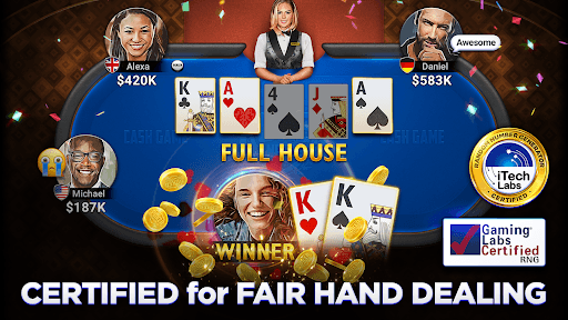 Silny generator liczb losowych (RNG) implementuje każde rozdanie w Poker Championship, zapewniając w ten sposób absolutnie uczciwą grę. Nasza gra została certyfikowana przez Gaming Laboratories International, globalną wiodącą firmę w dziedzinie testowania gier i loterii.